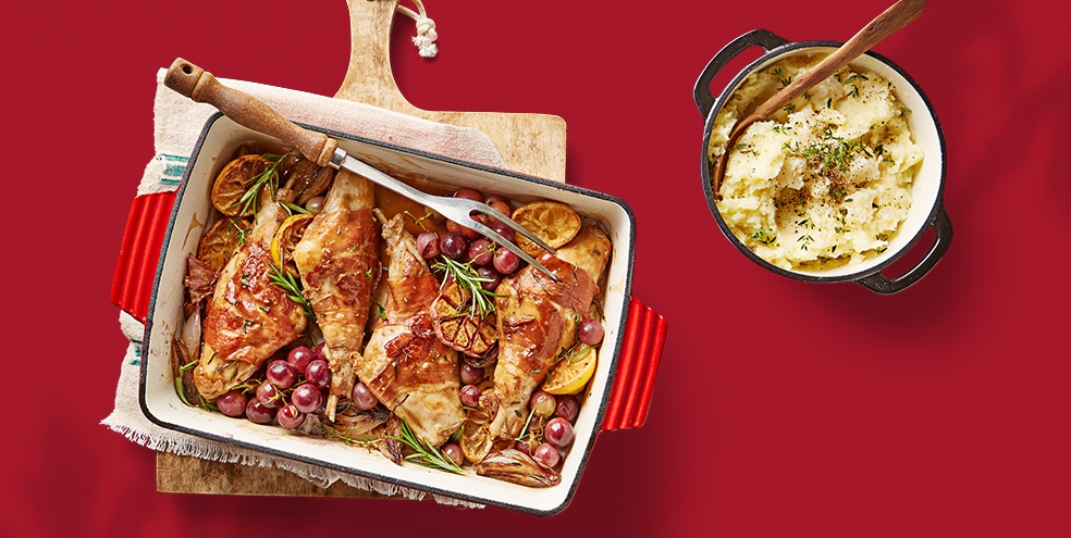 - Eventueel: druiven, gedroogde pruimen, peperkoek of maizena voor de saus