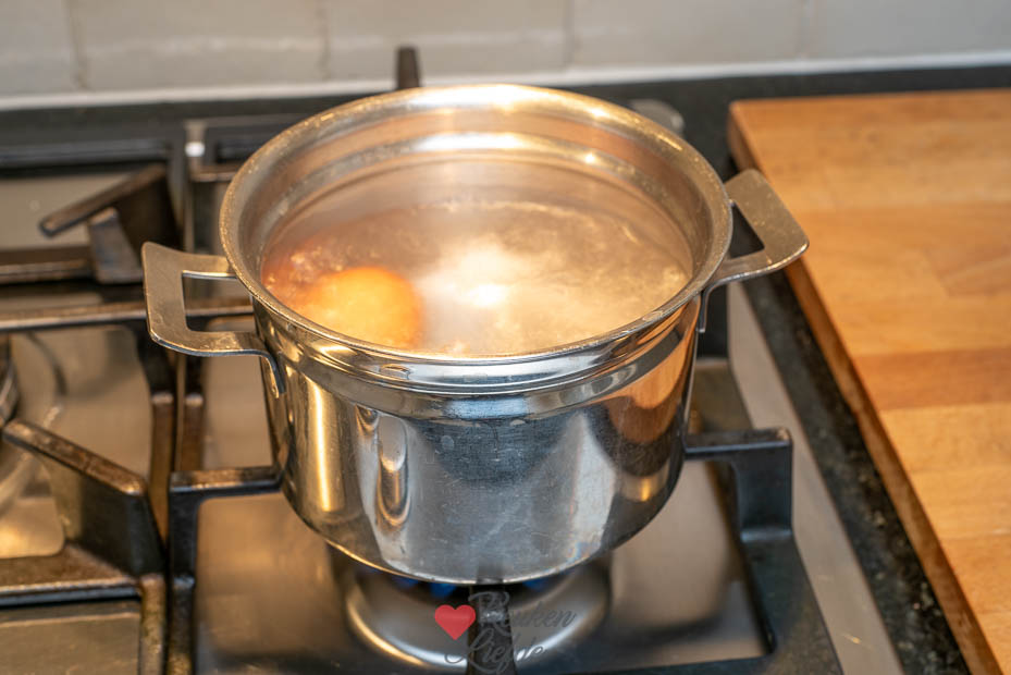 - Wanneer het water kookt voeg je twee eieren eraan toe en kook je ze binnen circa 10 minuten hard.