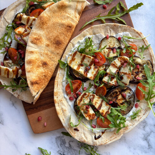 - Halloumi wrap: Vul het brood met gegrilde halloumi, gegrilde groenten en pesto.