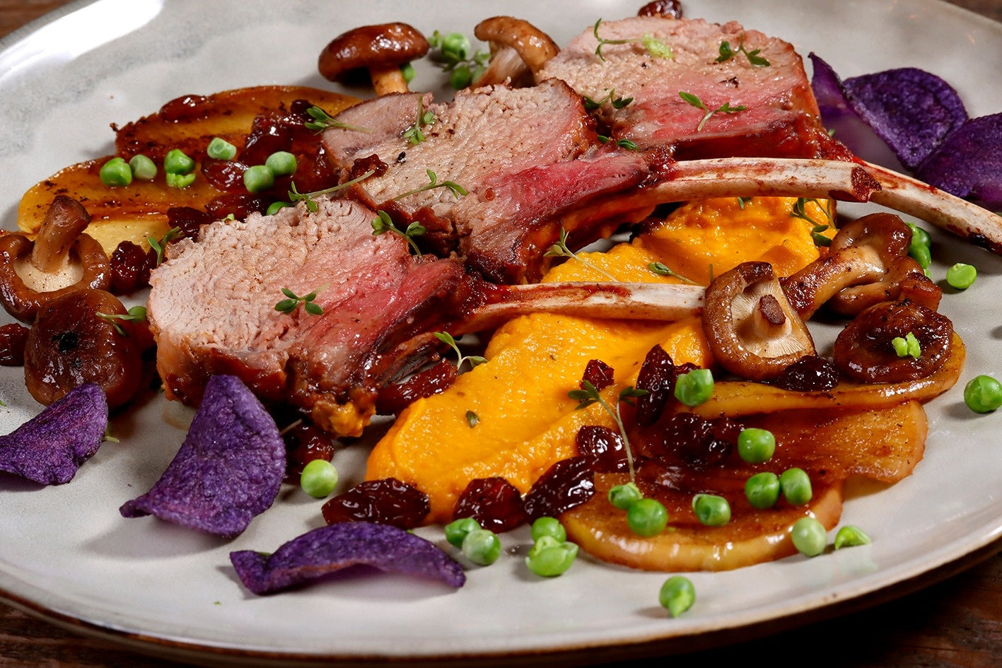 Wildzwijn medaillons met gesuikerde knoflook, parp